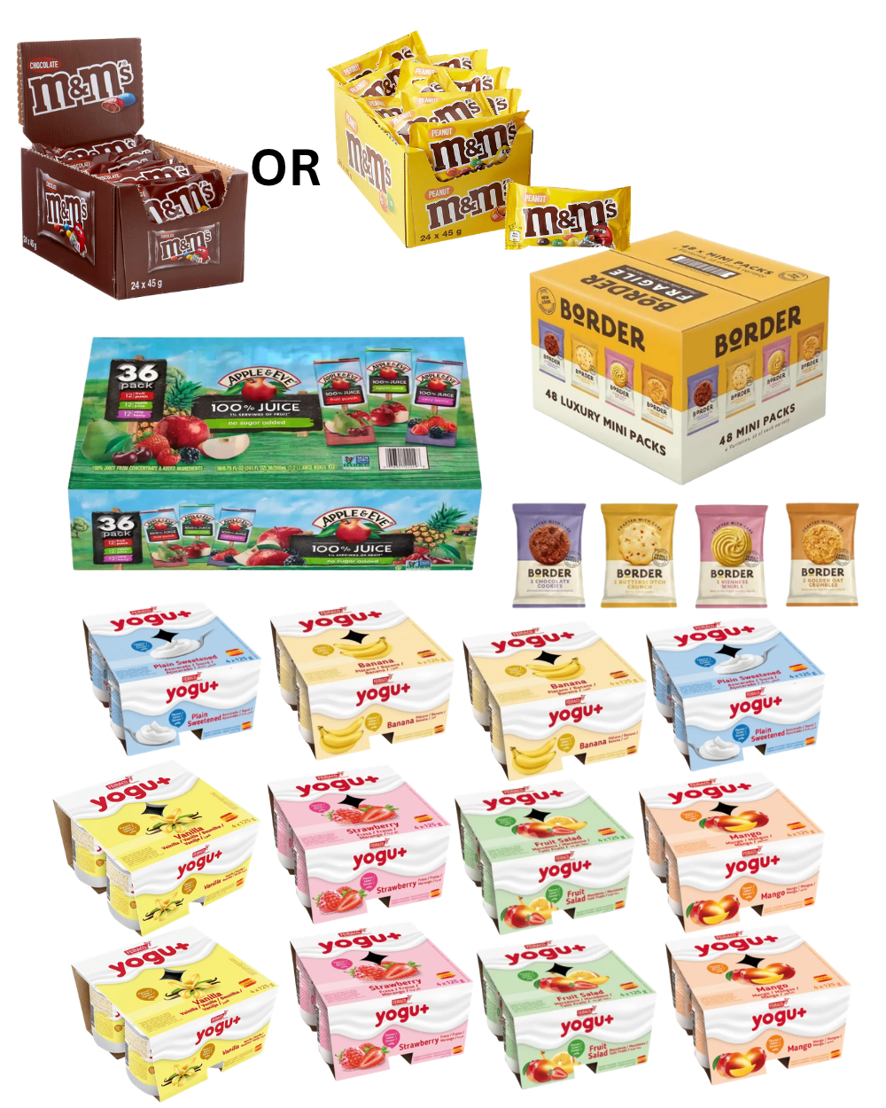 - ✅ 48 cups of Yogu+ Yoghurt (variety of flavours)